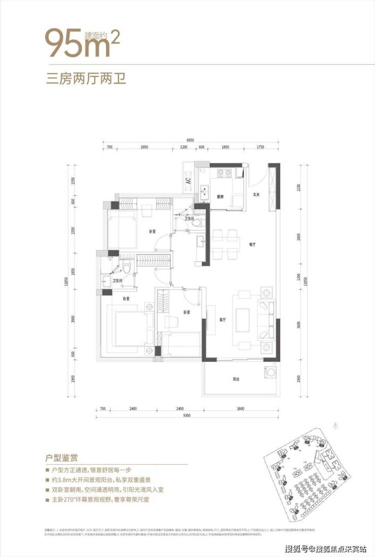 95㎡3房2卫:【3.8米客厅开间/主卧270°落地玻璃窗/大运小2房价买大三房】