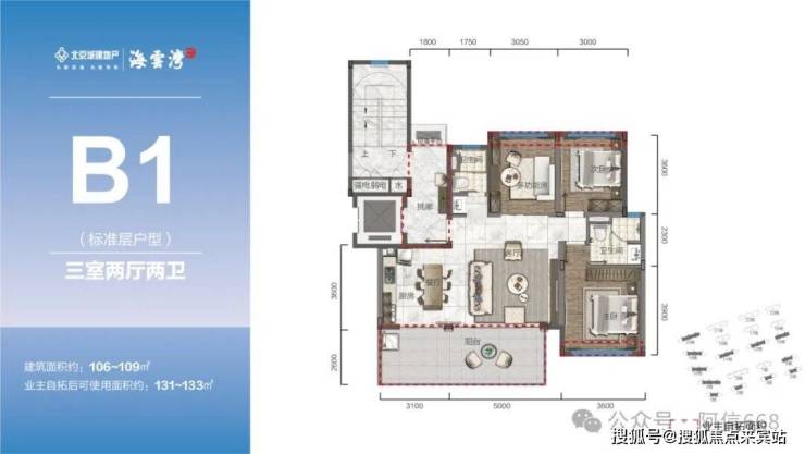 2、105-108平米三房两卫