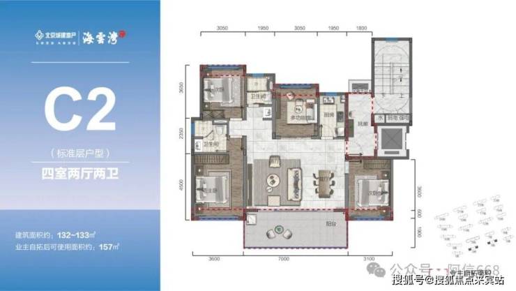 105-120㎡三房、132㎡四房