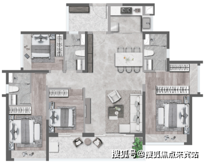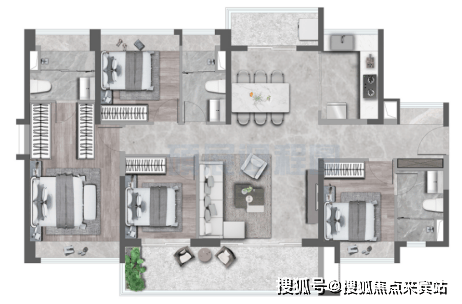 2、大良140㎡四房户型中仅唯一的双主套设计