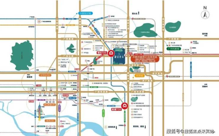②一大城轨:穗莞深-新白广城际,北至白云机场,南达深圳宝安机场,西连广州东站,通达佛山西站,速达大湾区各核心城市。