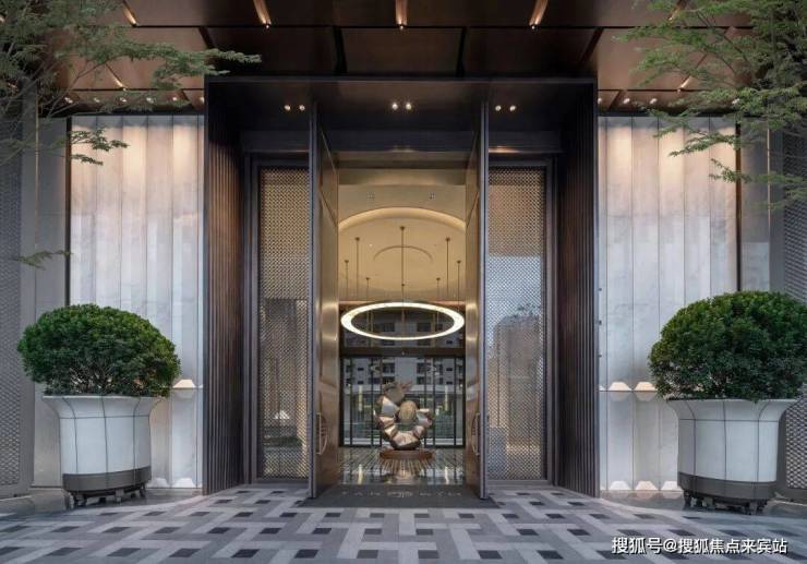 步入酒店式归家大堂,约280㎡空间承载海派至臻艺境,墙面贝金米黄石材以圆弧拉槽雕琢如玉般温润光影,如切如磋,如琢如磨。