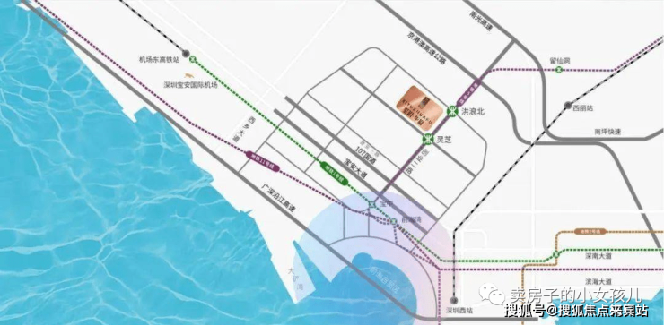 交通配套:地铁 5 号线洪浪北站,可快捷连接福田南山等区域。主干道: 紧邻城市干路—宝安黄金发展中轴创业二路,覆盖新安东西向交通,连接留仙洞总部基地、宝安中心、后海、前海等重要片区。