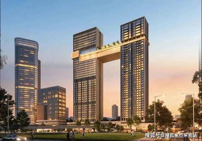 北塔为商务公寓和酒店,共40层,屋面高度约170米。南塔为精品住宅和空中别墅,共43层,屋面高度约154米。连接体位于北塔32~33层、南塔36~37层,底距地面高度约120米,跨越两层共8.4m高,跨度为47.7米~49.7米。