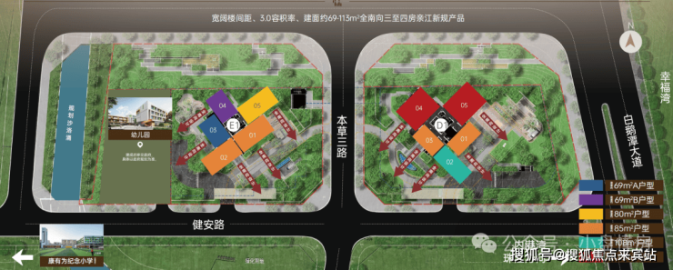 这盘只有2栋住宅,均为32层高,产品面积段涵盖69、85、108、113㎡三至四房,据说只有113平四房户型可以看到江。