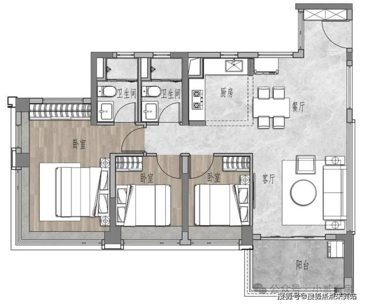👉约69㎡户型:南北对流,全盘只有62套,板块内稀缺小户型,大概是不愁卖的。