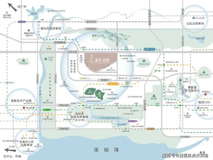 快捷交通路网,北环大道/南坪快速/侨香路/京港澳高速,20-30分钟到福田CBD、深圳北站、皇岗/福田/深圳湾三大口岸、宝安机场等,城芯而居,超享生活。