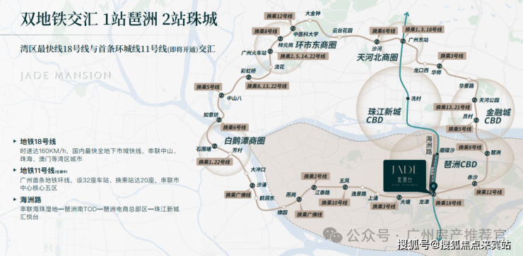 ⑦ 地铁11+18号线双轨交汇枢纽(1站琶洲-2站珠江新城-3站金融城)