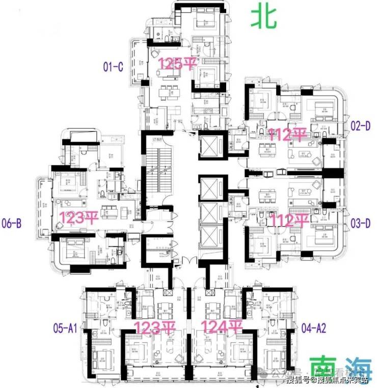 06 B户型——建面约122-124㎡3+1多功能空间 : 双龙抱珠户型,次卧带阳台。西北朝向看绿地公园及花园。虽然是125㎡户型中总价最低的,但仍保持高标准的空间尺度和配置,适合注重实用性的改善家庭,属于性价比之王。