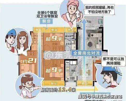 全屋南北通透,拥有6大飘窗,多个正对的全面屏飘窗,让清风阳光,铺满室内,又增加了收纳空间。