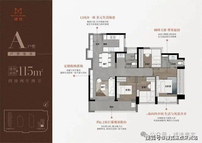 115㎡奢阔4房,总价716万起,有俩个户型仅可售85套