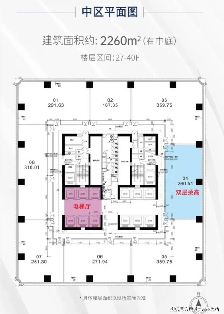 约12米双层通过大堂,20部国际品牌电梯速达目的楼层;