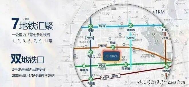 三地铁交汇地铁物业,0距离燕南地铁口(2号线燕南站),约400米到1号线/6号线科学馆站,片区800米内汇集1、2、3、6、7、9、11号七条地铁线,50多个地铁站口。