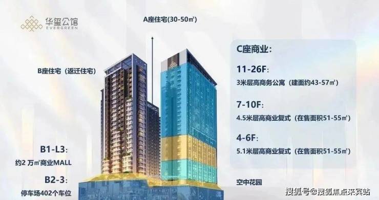 项目产品涵盖精品住宅和商办公寓,项目规划三栋高层塔楼,1-3层裙楼为街区式商业,塔楼分A、B、C三座:A座地上28层,4楼为架空层,5-28楼为32-47㎡住宅;B座地上28层,为返迁住宅;C座地上26层,4-9层为商业,10-26层为51-64㎡商办公寓。项目以城市高端精品住宅标准打造,从设计、用材用料、人性化细节等方面充分考量,极大地提高居住的舒适度和品质感。