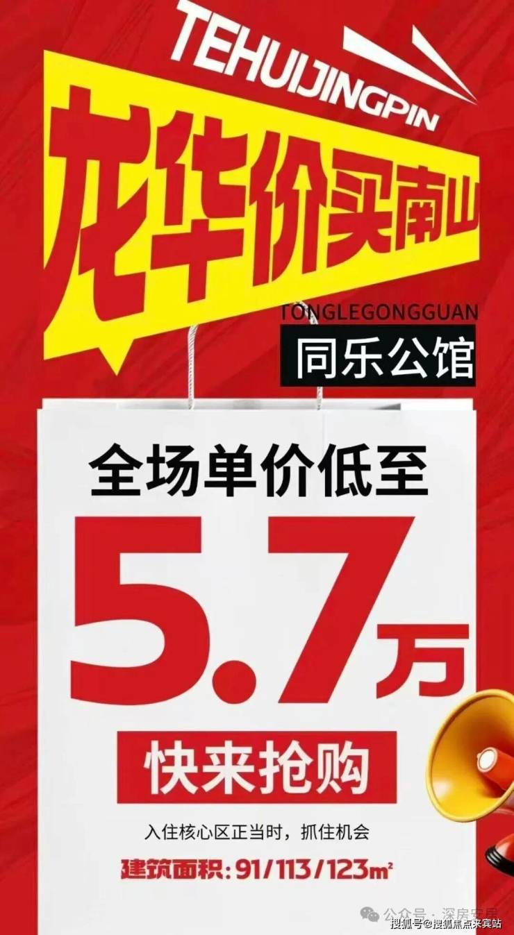 最新消息:南山科技园【同乐公馆】推出特价活动,单价5.7万/m²起,最低总价518万,91㎡折后总价518万起,113㎡折后总价700万起,123㎡折后762万起!折后单价5.7万/㎡起!本周六可直接认购。