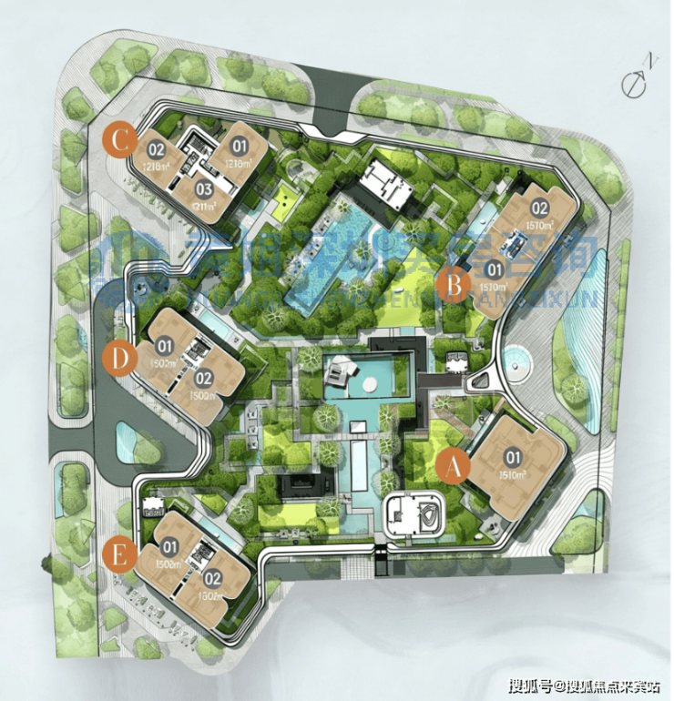 其中标准层为211-218-302-370-510㎡的3-4房,另外顶层复式有518-655-938㎡户型。