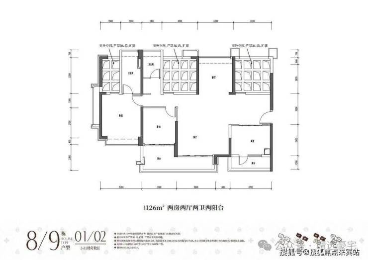 空间革命:两梯三户低密配置,全南向户型搭载多阳台露台,拓展率达90%以上