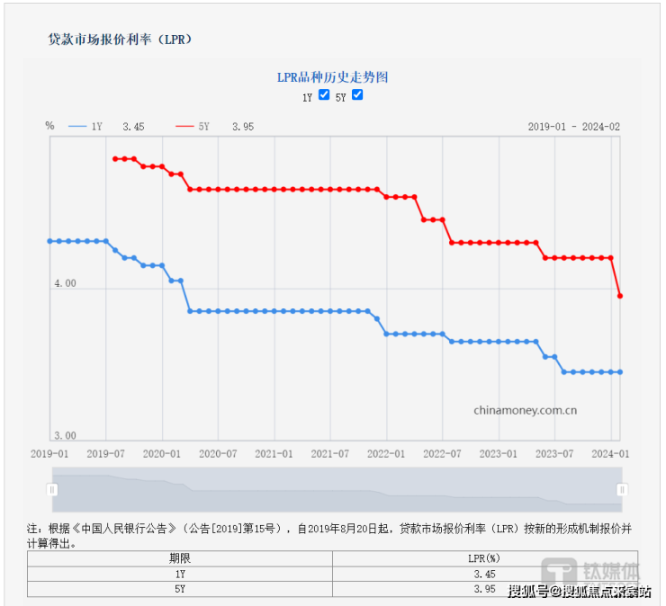 2月20日,中国人民银行授权全国银行间同业拆借中心公布,央行将1年期LPR维持在3.45%不变,5年期以上LPR由4.20%下调至3.95%。