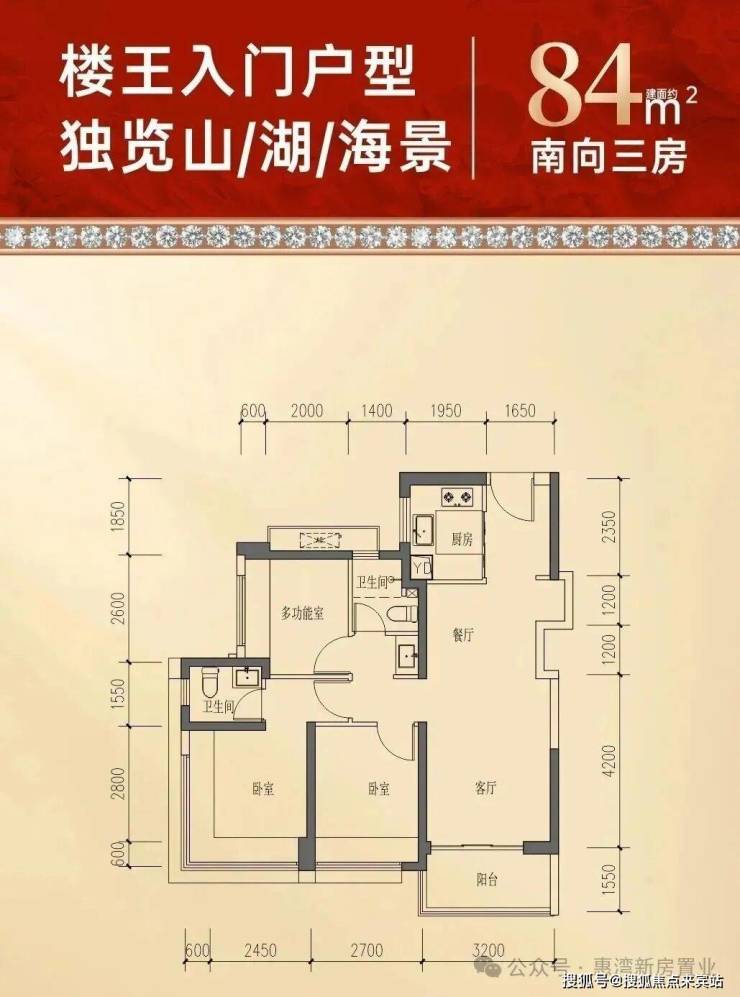 84㎡3房2卫:户型与9栋1单元83㎡、10栋2单元84㎡相同,经典竖厅,使用率88%,客餐厅一体,公卫三分离,主卧双面采光,实用精致。