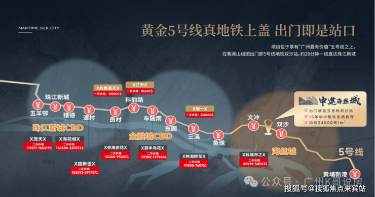 项目是临港经济区的重要功能节点,双沙旧改地块众多,首开区具体位置在5号线双沙地铁站B口附近,与地铁5号线双沙站的直线距离仅约50米,与地铁13号线双岗站直线距离也不到500米,双地铁站护航,交通条件优越,从项目出发,2站到鱼珠CBD,5站金融城,6站琶洲东区,10站直达珠江新城,囊括广州最重要的几个CBD。