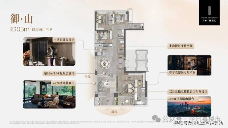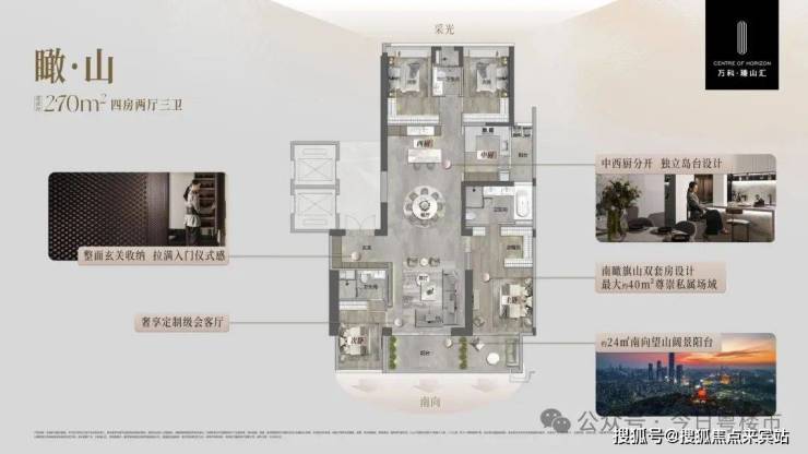 目前在售建面约270-760㎡产品,其中主推2号楼楼尊建面约380㎡的大平层单位。