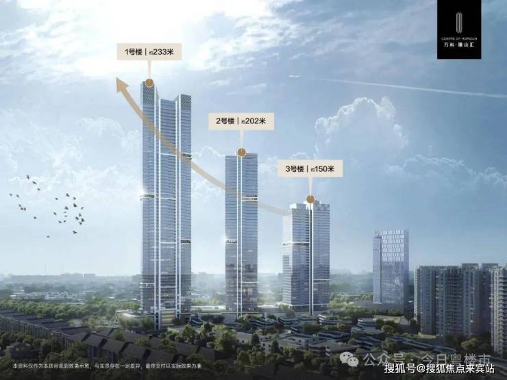采用国际化的超高层建筑演绎手法,打造最高约233米高的环幕奢景大平层产品,并通过最先进的建筑手法与材质,接轨国际的审美标准,打造国际化建筑立面。