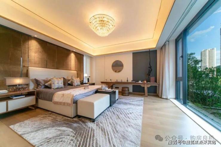 奢阔主卧配以全落地窗,磅礴山水尽收眼底;额外享有休闲露台,俯瞰庭院葱茏,独享一片天地。