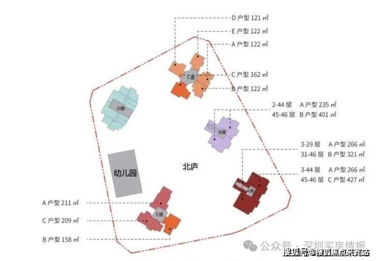 北庐住宅户型:建面约210㎡、235㎡、266㎡、322㎡,410-470㎡(复式)