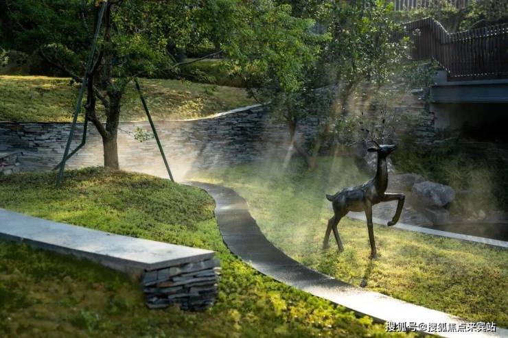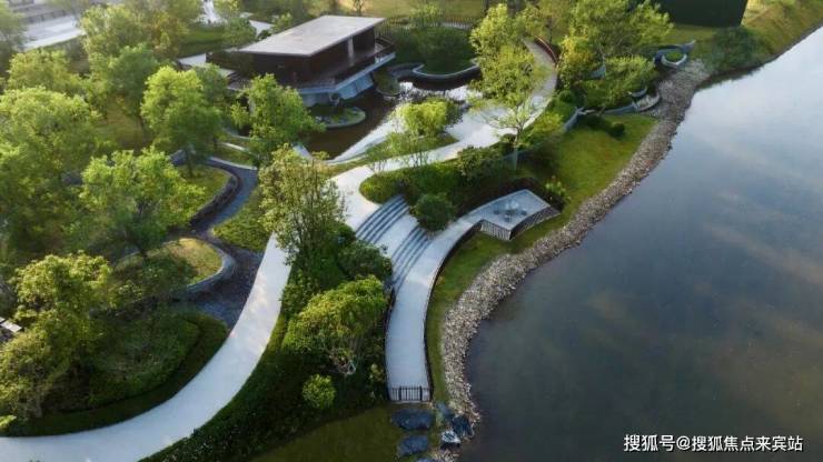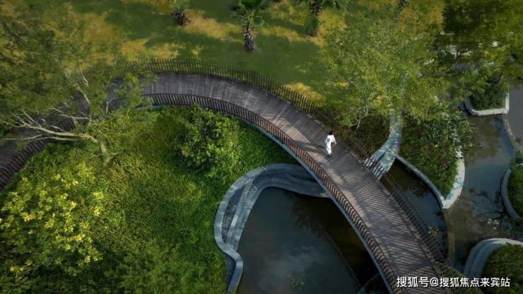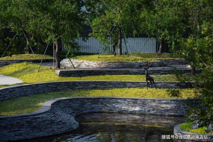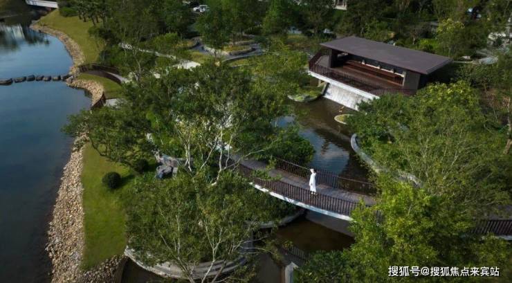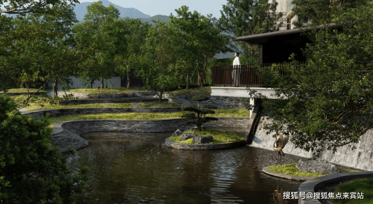 被绿谷包围的景亭叠瀑,野趣自然的室外会客空间,利用植物特性,打造舒适、私密的自然之所。飞鸿的景桥,嬉戏的水鸟,望远山,观自在。