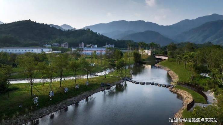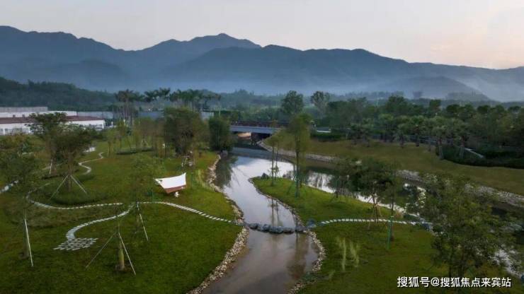 绵延的青山环绕,溯溪款款而来。我们将场地周围的自然风光进行再利用,沿用自然山脉,将原有的小河进行扩写。周围的林脉渗透进场地内,最大程度地保留场地的自然现状,为生活在自然里营造基础。