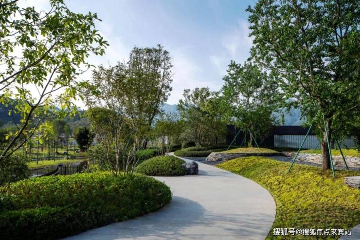 场地内含“山、林、溪”,植被丰茂,水鸟飞翔,我们充分利用周边的景观资源,使设计与自然相融,平衡人居与自然。同时利用溪流打造亲水性空间,自然与空间设计溯源,激发场地领域感回应,营造开合有致的高端体验空间。