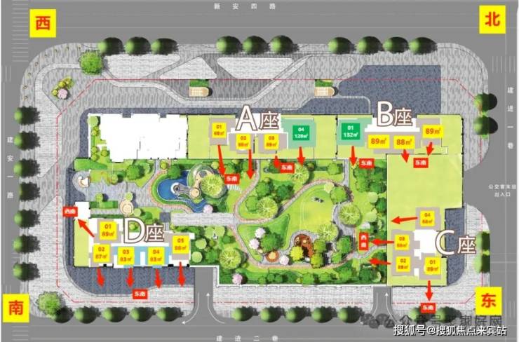 梯户比:A-C座2梯4户,D座2梯5户