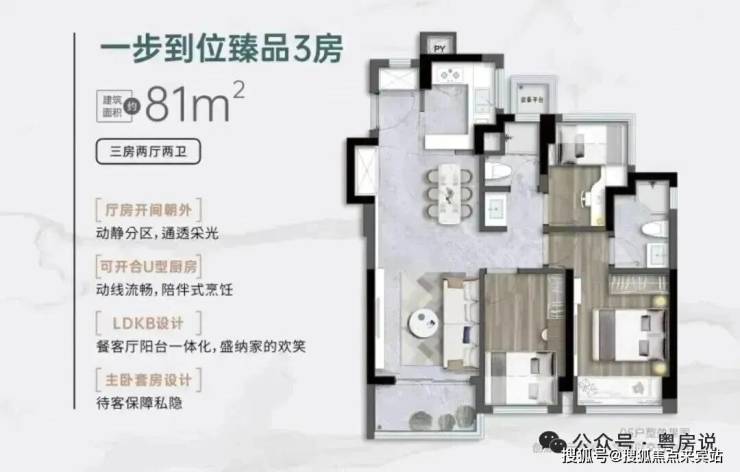 设计的是竖厅格局,客厅3.05米开间,LDKB一体化,S墙预留冰箱卡槽位,动静分区,U型厨房,卫生间三段式干湿分离还带1个设备平台,得房率约91%(包含赠送),实用面积约73.71㎡,正东或正南朝向。