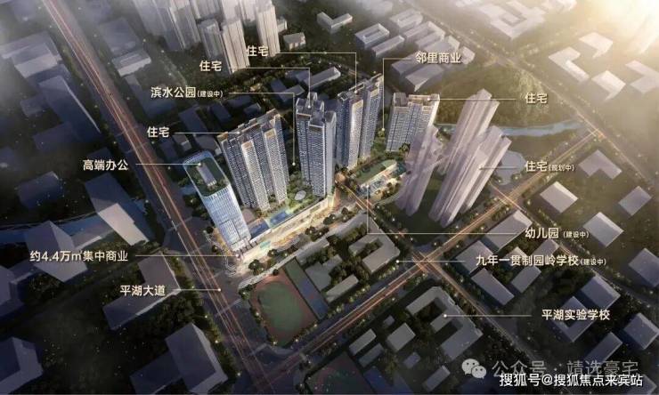 以超越之姿,匠著建面约47万㎡综合活力社区,汇聚品质住宅、邻里商业、高端商务、滨水绿地公园,等多元业态,重塑平湖人居新封面。