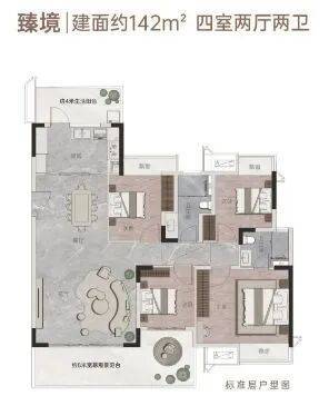 3. 匠心建筑品质,诠释舒适生活低密社区:容积率仅2.8,绿化率35%,楼间距超60米,保障私密性与采光;精装交付:全屋配备中央空调、新风系统、智能门锁,采用LOW-E中空玻璃,降噪隔热;户型设计:主推89-143㎡三至四房,南北通透,主卧套房设计,得房率超85%。户型设计