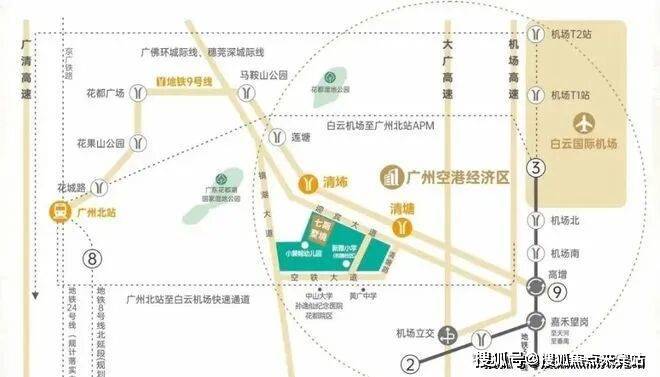 1. 立体交通网络,便捷出行体验双地铁交汇:距地铁9号线清㘵站仅500米,3站直达广州北站,6站到白云机场;快速路网:紧邻迎宾大道、广花快速路,20分钟直达白云新城,30分钟通达珠江新城;公交枢纽:项目门口设“合和新城站”,10余条公交线路覆盖花都全域。
