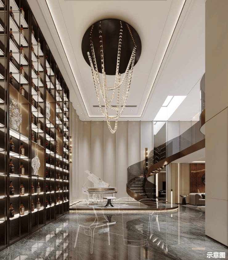 影音室、藏品品鉴区、商务会客区,还有足够的空间容下10余人的餐桌,这无异于把高级私人会所搬到家中,满足高净值人士的多重社交需求。