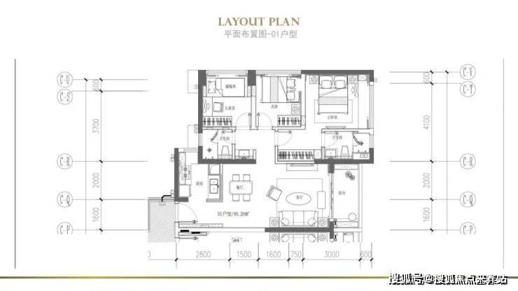 🔻建面约90㎡(或89㎡)——01户型(东向)