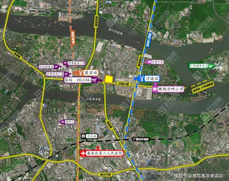 项目西侧是番禺白宫,丽江明珠酒店正在拆除翻建,将改造成一座10万㎡的非标商业体,叫容屿·ISLEMo,建成后会是个新地标