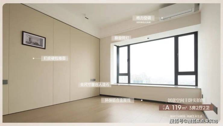以约4.1米朗阔横厅,将阳台、客厅、餐厅连为一体,引光入室,尺度豁达。全屋三房均享有超2.9米舒适面宽,空间从容不迫;全屋飘窗,延展采光与视野,让温暖常伴左右。
