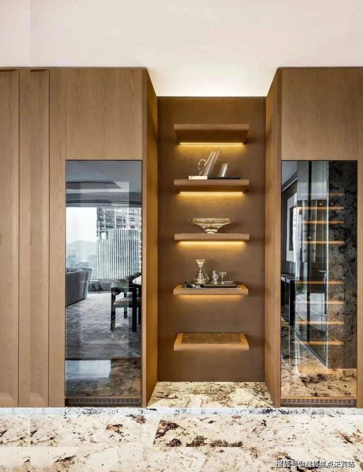 全球多达6种的稀贵奢石装点着室内,大面积、流动纹路的天然石材运用更是给人“一入户就震撼”的视觉冲击。土耳其古堡灰、意大利威尼斯棕、意大利鱼肚金和迪奥金……让室内成为一座奢石博物馆。