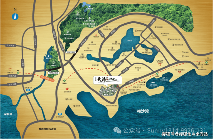 盐坝高速-大梅沙出口-艺海路-环梅路-盐梅路-京基天涛轩