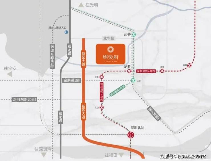 • 3轨道:地铁:约500米4号线龙胜站,约800米6号线元芬站,3站深圳北, 5站福田;城际铁路:深大城际(在建中),3站到机场。• 1大道:新区大道,7个红绿灯到福田。• 4干道:福龙路快速路,畅达福田中心;侨城东路北延(在建中)、沙河东路北延(规划中)、宝鹏通道(规划中)畅达南山、宝安,节省约20%通勤效率。