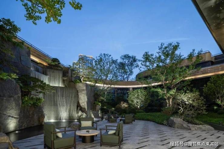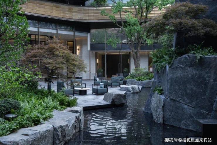 设计通过层层退台的空间布置形式,以游廊的方式串联起各层的功能分区,恒温泳池、健身空间、私宴厅……赋予生活更多的清新意趣。同时,将传统园林的空间手法转移到公区内部,让建筑在自然中自由延伸,带来移步异景的多维视觉享受;迂回的游园动线,也在有限的空间中,丰富了社交和休闲的场所与体验。立体灵动的游园系统,创造出一种山水交融的社区环境,也保障了社区的私密性和安全性。