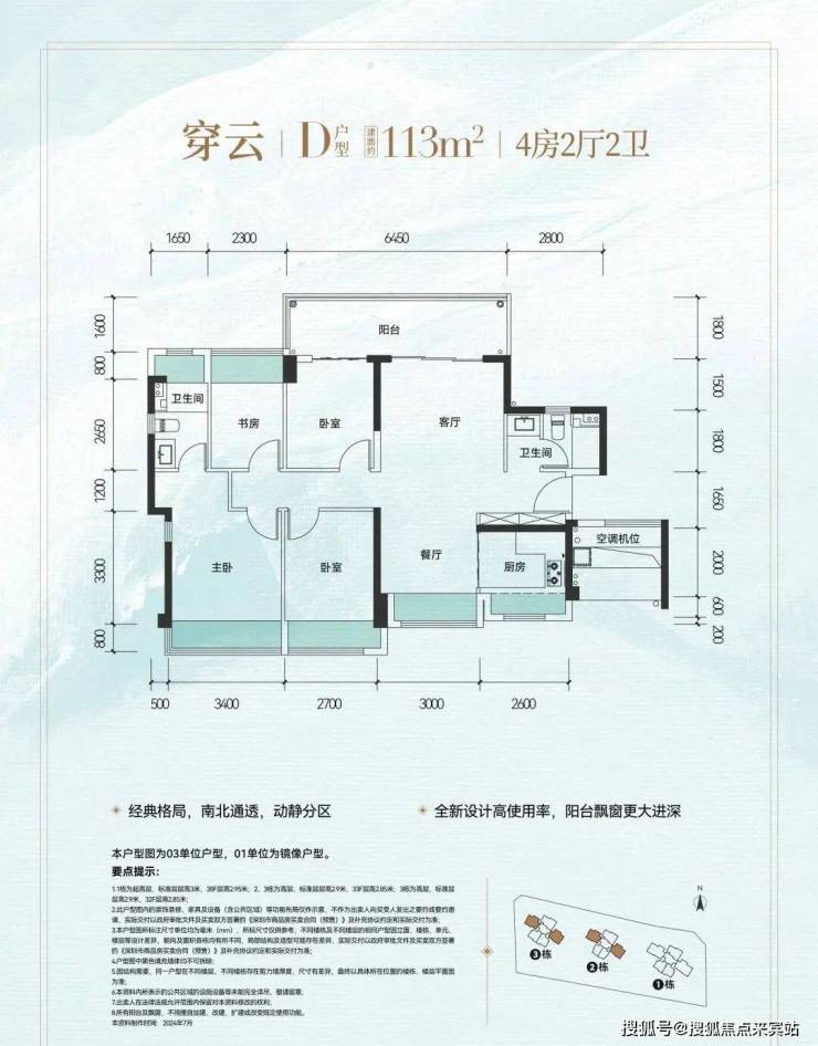 建筑面积约141平的大四房户型,设计了15.5米超大面宽,客厅开间达到6.2米。客餐厅的设计南北通透,户型的8个大凸窗带来充足光线。除了141㎡户型,振业天境云庭还有建面约89、113、114平方米的三至四房。