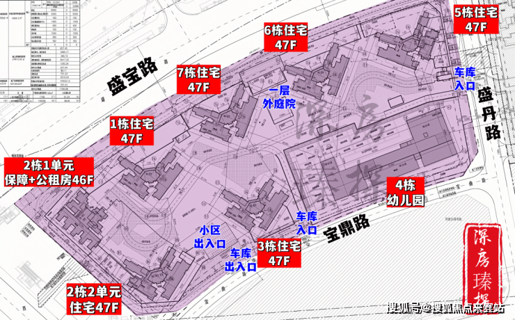 总规划2623户,其中商品房2250户(包含回迁房,具体房源量暂不明确),保障房373户,8栋1单元3梯5户,其它栋数均是3梯6户设计,地下室有3层,规划1919个车位,其中含充电桩车位577个,100%预留充电桩,车位比1:0.73,配建有公交首末站,邮政所,菜市场。