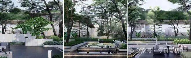 园林设计上,做了约9000㎡下沉式花园,配置了多功能水院会所、室内景观泳池、全龄儿童生活场、林下休憩等大量社交空间。