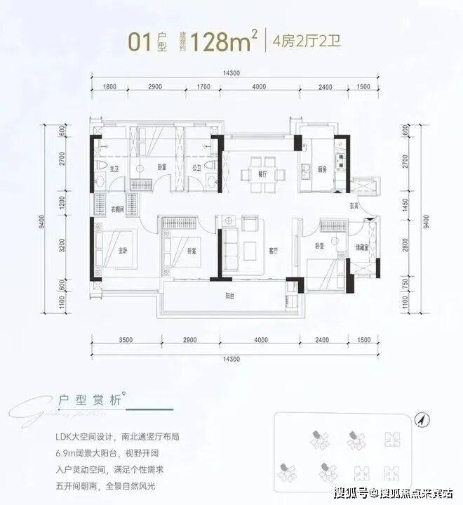 推出建面约84㎡三房两厅两卫,约98㎡三房两厅两卫,约114㎡四房两厅两卫,约128㎡四房两厅两卫,共计4个面积段产品。