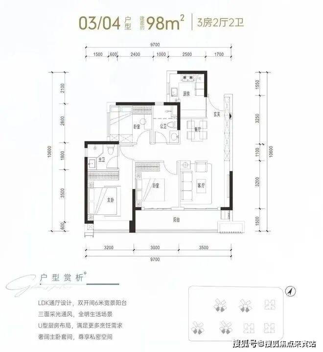 建面约98㎡是传统竖厅动静分区格局,客厅进深7.55米(不含阳台),开间3.5米,配有6.5米宽景阳台,主卧13.18㎡(不含主卫和飘窗),客厅空间变化不大,但厨房和卧室空间要好很多,居住的舒适性会比较好。