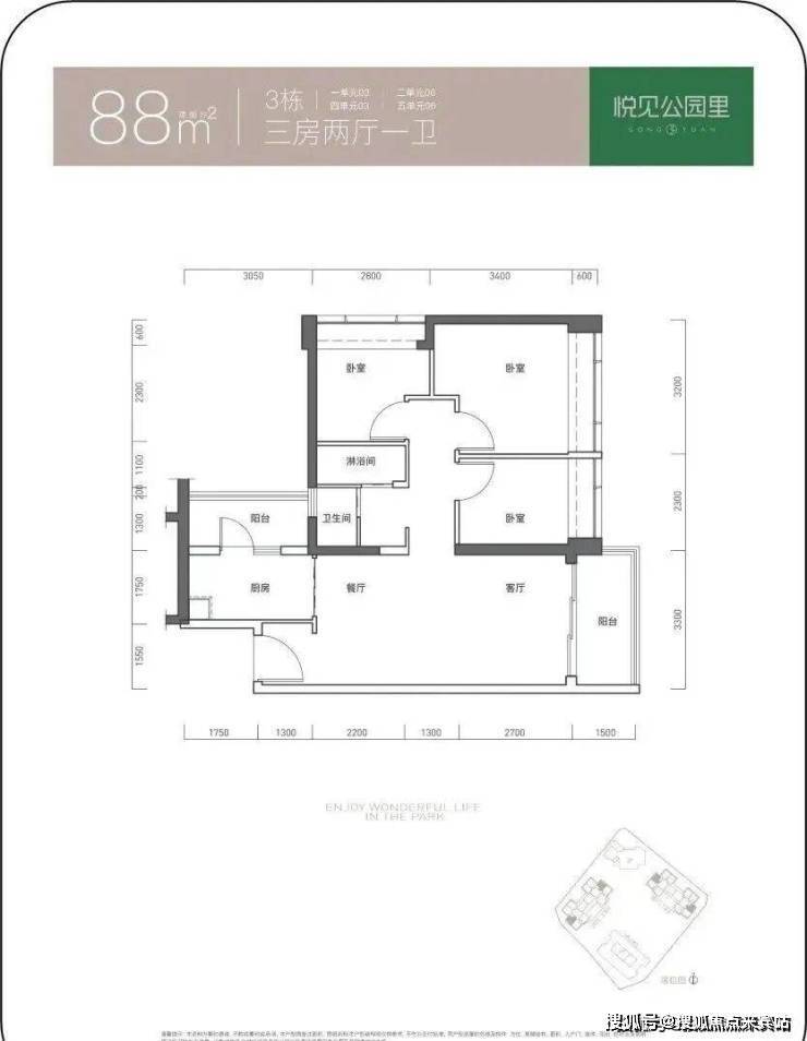 · 88㎡三房 1 卫:308 万 - 324 万,单价 3.5 万 - 3.68 万 /㎡。